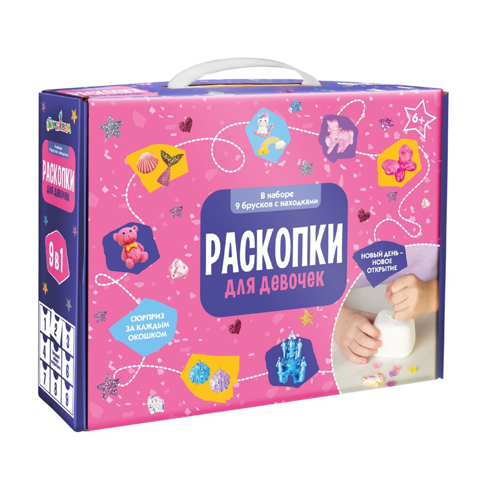 Набор для раскопок «Для девочек» станет ярким и желанным подарком, который дарит не один момент радости, а целую серию эмоций и ожидания чуда. Девочка будет с интересом открывать окошки по очереди, раскапывать бруски и собирать собственную коллекцию волшебных сокровищ. Эффект сюрприза за каждым окошком, красочная упаковка и ощущение настоящего приключения делают этот набор особенно увлекательным и запоминающимся.