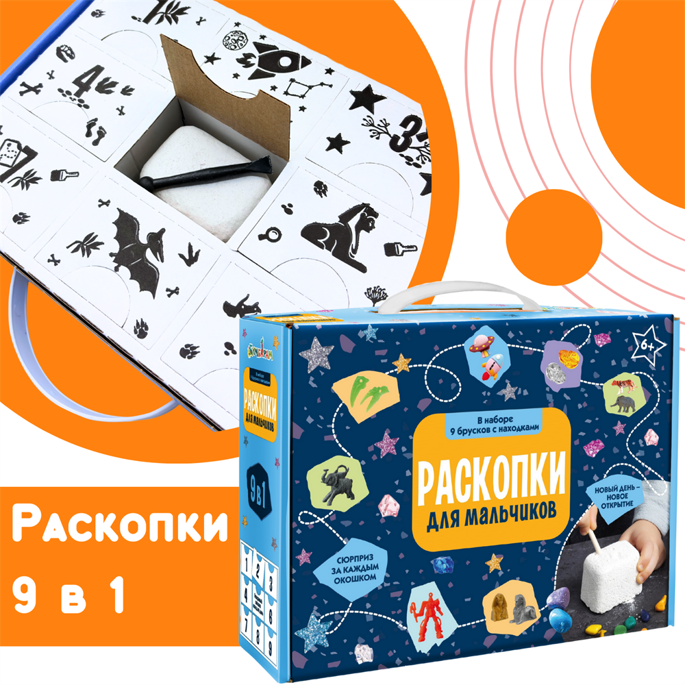 Наша компания является крупнейшим в России производителем раскопок. Играть просто! Открывайте по одному окошку каждый день и проводите раскопки. В каждом бруске спрятаны разные находки.